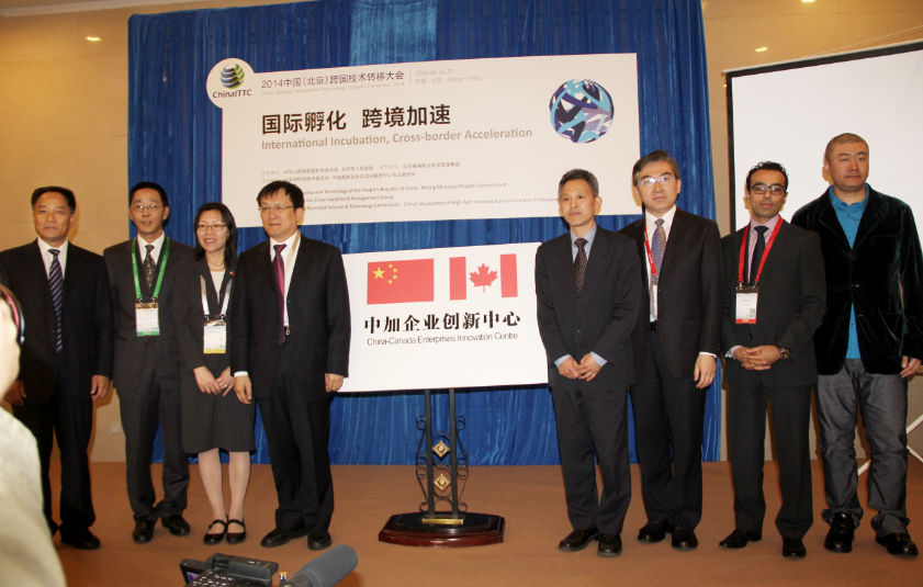 2014年4月15日,中加企業創新中心揭牌儀式在瀚海智業“全球孵化,跨境加速”專場上隆重舉行。國家科技部國際合作司參贊蔡嘉寧,北京市科委副主任朱世龍,中國駐加拿大多倫多總領館參贊楊少軍,安省創新廳代表Sandy,111數據孵化器董事總經理Bilal Khan,搜狐董事劉志碩,北京瀚海智業投資管理集團董事長王漢光,中關村天使投資百人會會長喬遷作為揭牌嘉賓一起為中加企業創新中心揭牌。