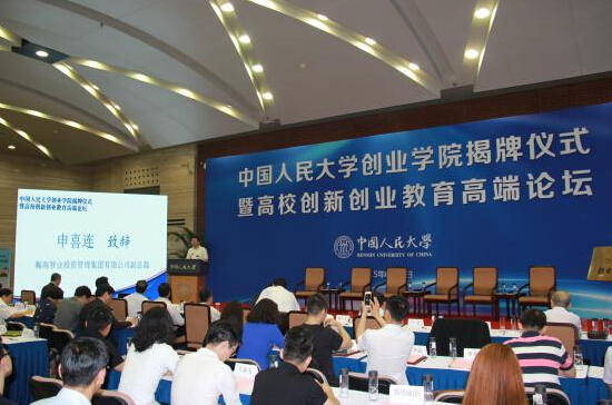 2015年6月30日,中國人民大學創業學院揭牌儀式暨高校創新創業教育高端論壇在中國人民大學世紀館舉行,中國人民大學校長陳雨露、教育部高校學生司副司長荊德剛、北京市政府副秘書長郭廣生、中關村科技園管委會副主任宣鴻、中國證券業協會副會長王旻、貴陽市副市長王玉祥等政、商、學界領導出席論壇并致辭。北京瀚海智業投資管理集團副總裁申喜連應邀參加論壇活動,并發表演講。