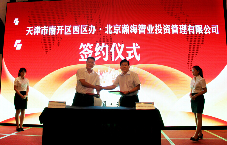 在簽約儀式上,集團總裁趙振江先生與南開區政府西區辦簽訂框架合作協議。隨后,集團總裁趙振江先生就合作共建產業園區發表感言,介紹了瀚海智業的國際化情況,并表達了與天津市南開區西部片區的合作意愿。