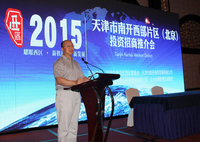 7月24日,天津市南開區西部片區(北京)投資招商推介會在北京開元名都大酒店舉行。此次會議是由天津市南開區政府西區管委會主辦,北京瀚海智業投資管理有限公司、北大縱橫管理咨詢集團聯合協辦。參會的領導有區委常委、常務副區長朱偉山,政協副主席、西區管委會主任石江。與會的企業有北京科技類、生物醫藥類、金融類企業等百余家。集團總裁趙振江先生及集團高管受邀參加,并由集團總裁趙振江先生發表主旨演講。