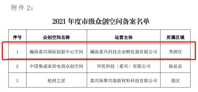 瀚海嘉興國際創(chuàng)新中心榮獲2021年度市級眾創(chuàng)空間資質(zhì)